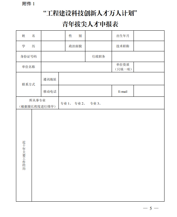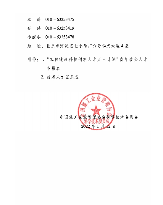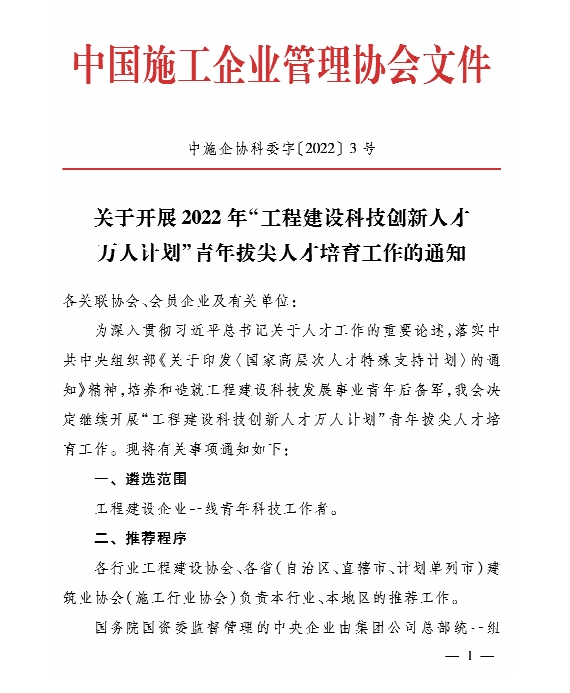 关于开展2022年“工程建设科技创新人才万人计划”青年拔尖人才培育工作的通知