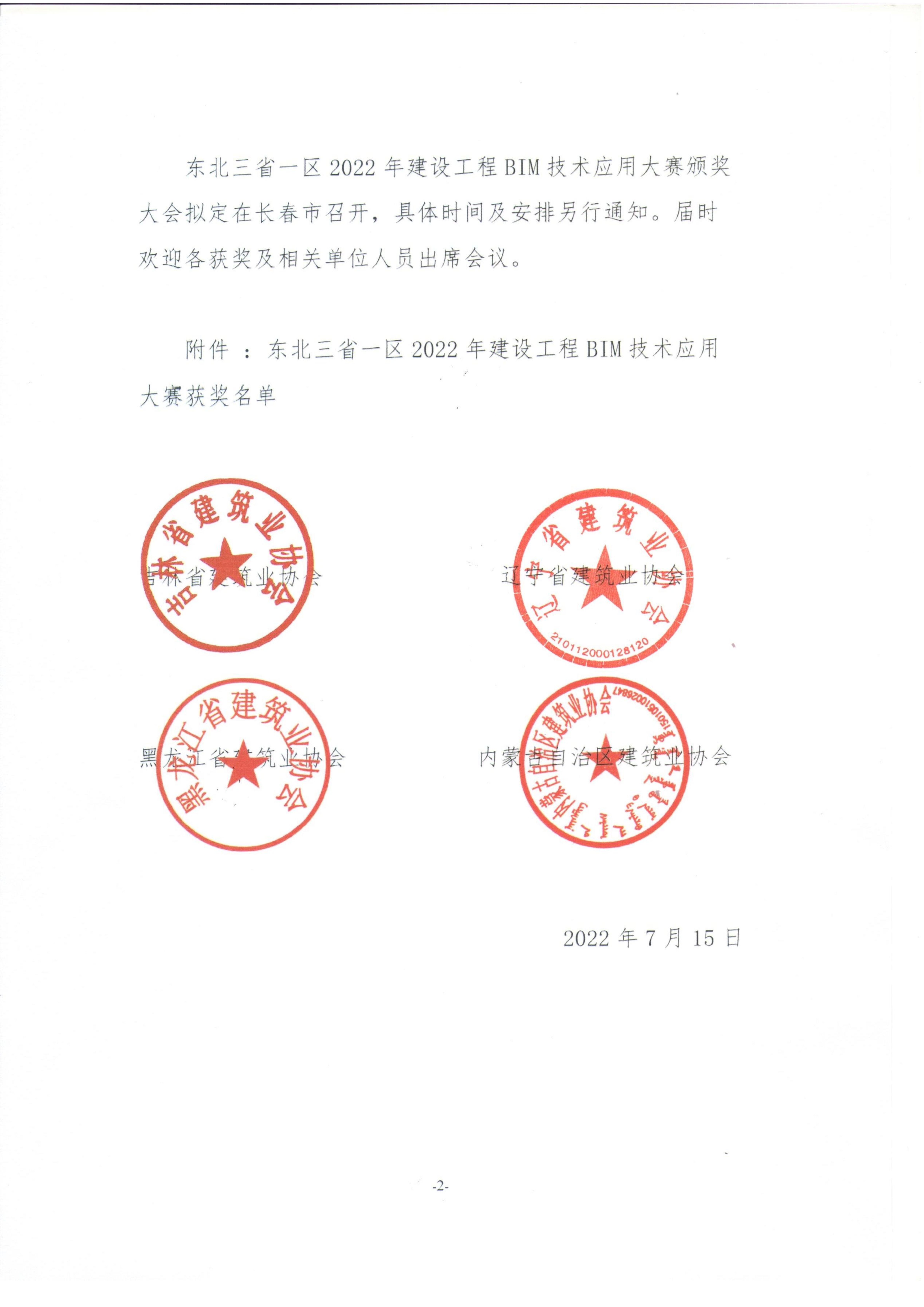 关于公布东北三省一区2022年建设工程BIM技术应用大赛获奖名单的通知(扫描件).pdf