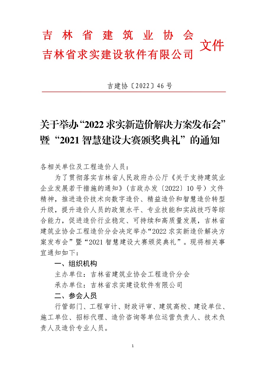 关于举办“2022求实新造价解决方案发布会”暨“2021智慧建设大赛颁奖典礼”的通知