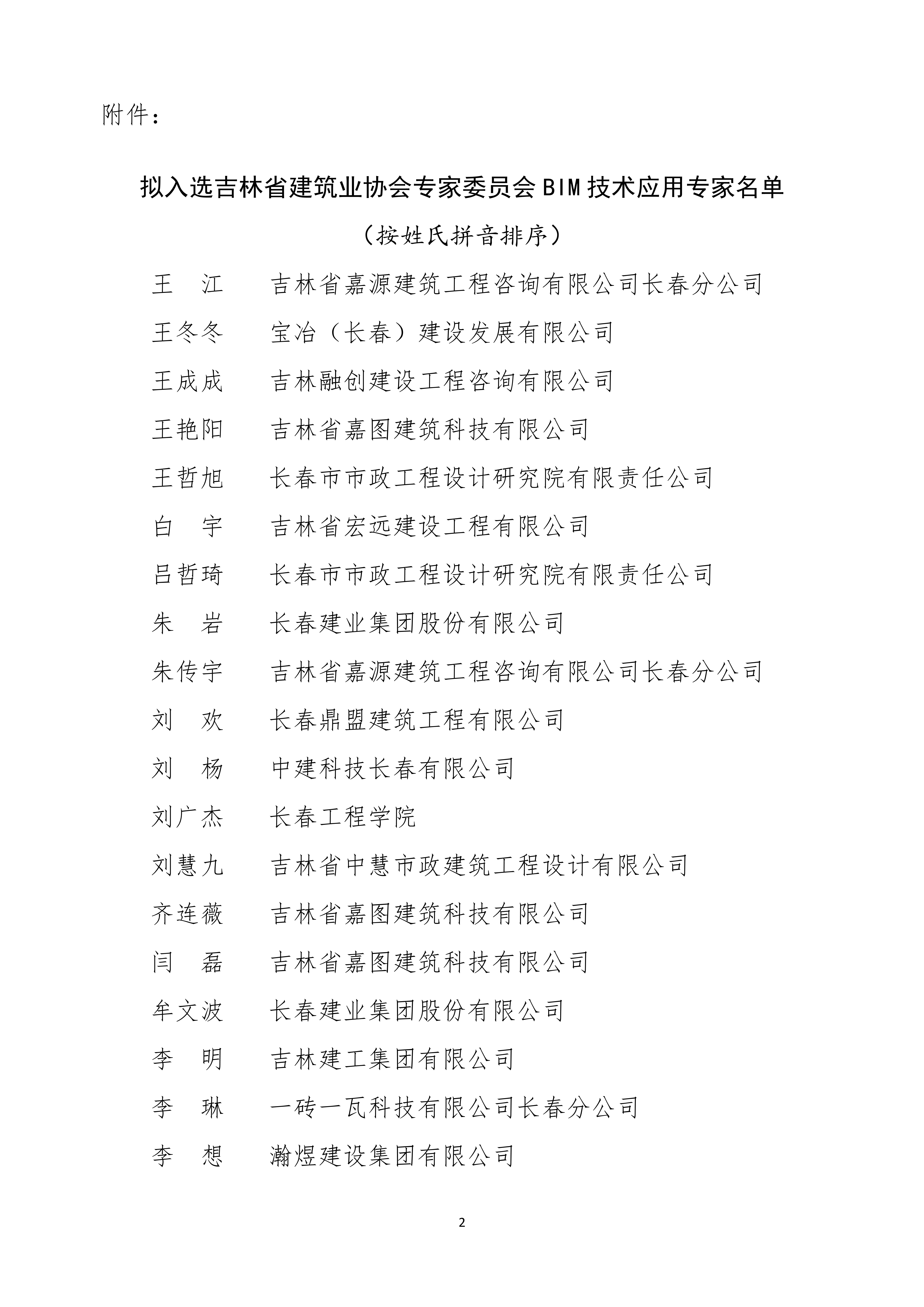 附件:拟入选吉林省建筑业协会专家委员会BIM技术应用专家名单