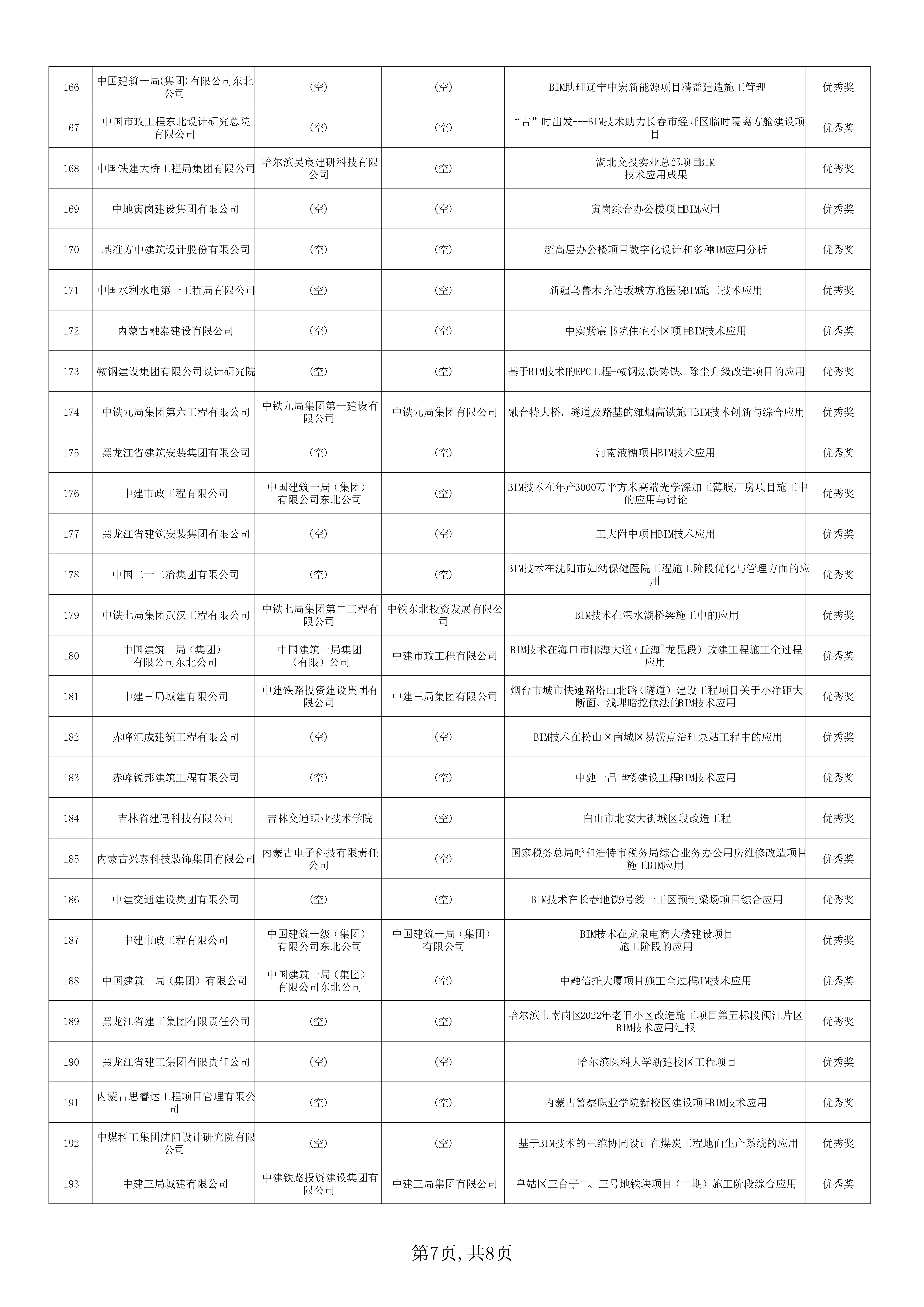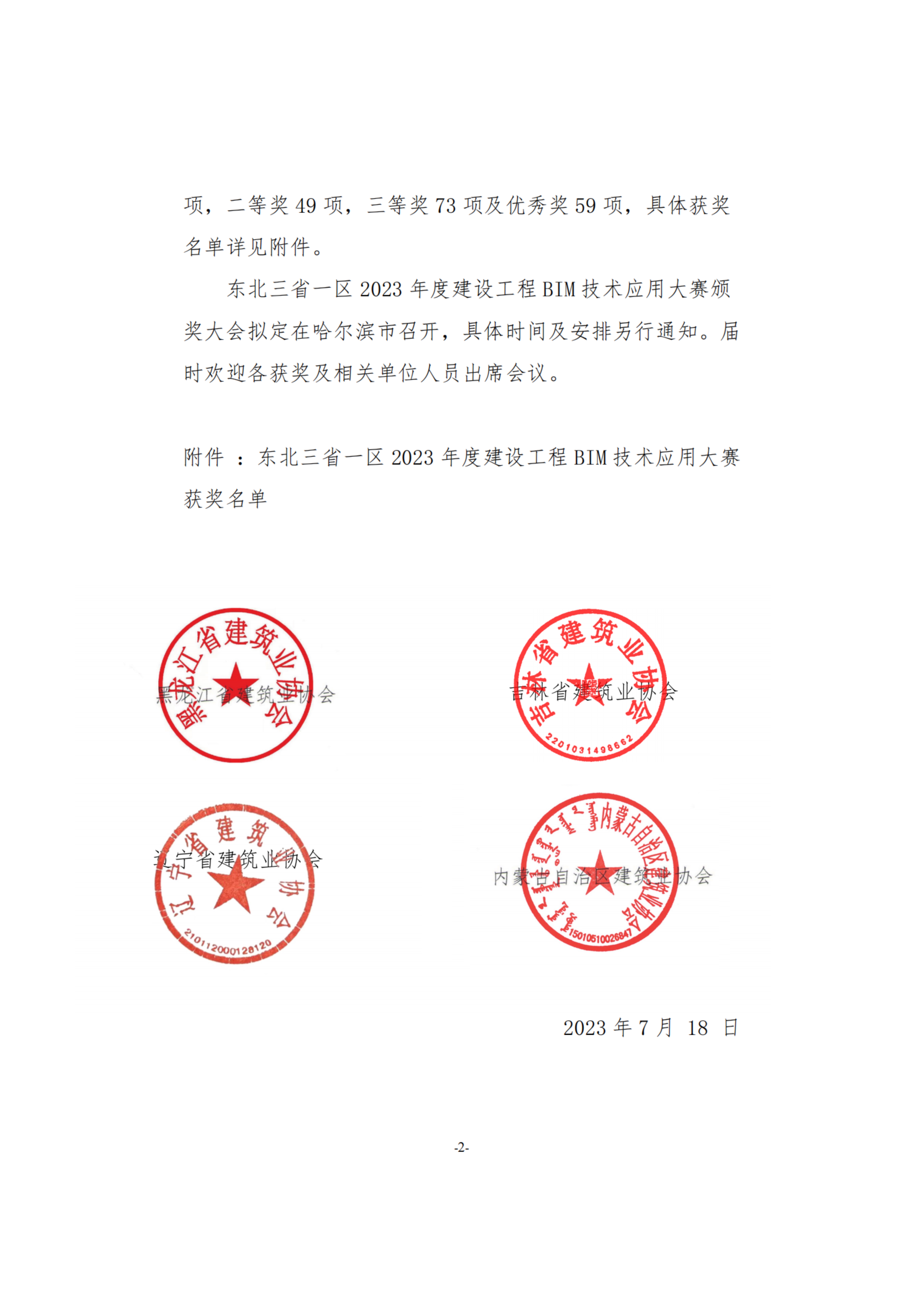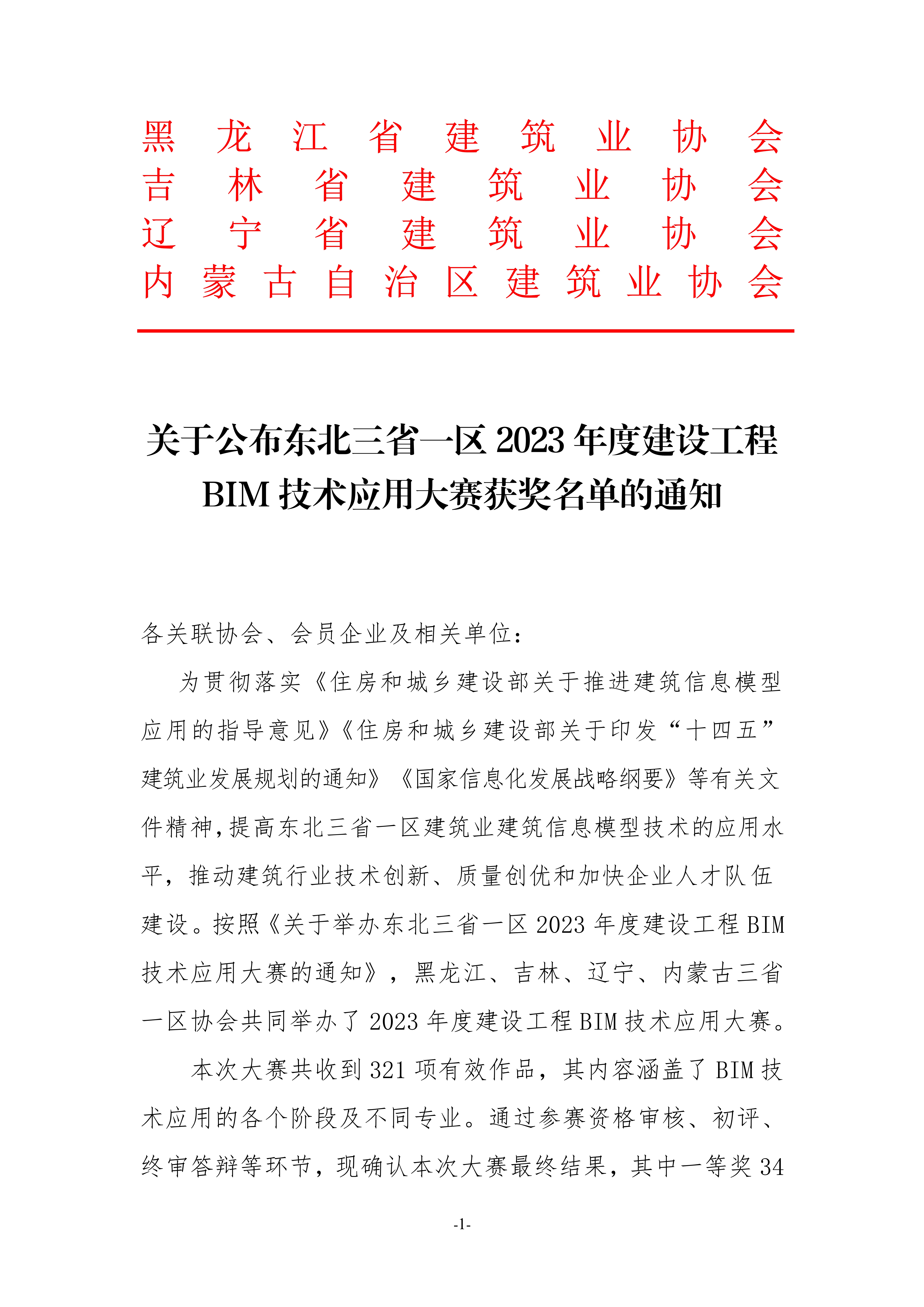 关于公布东北三省一区2023年建设工程BIM技术应用大赛获奖名单的通知