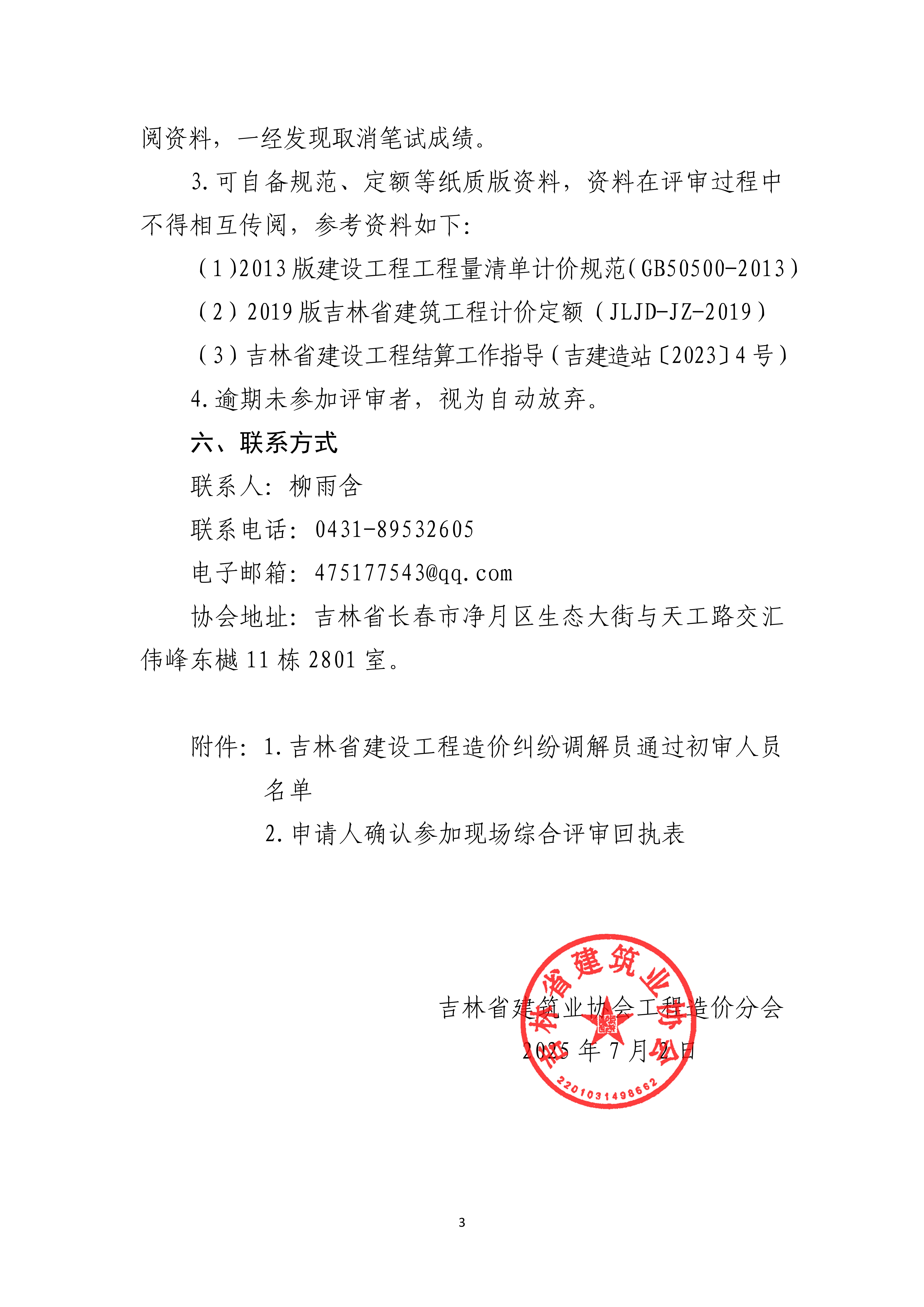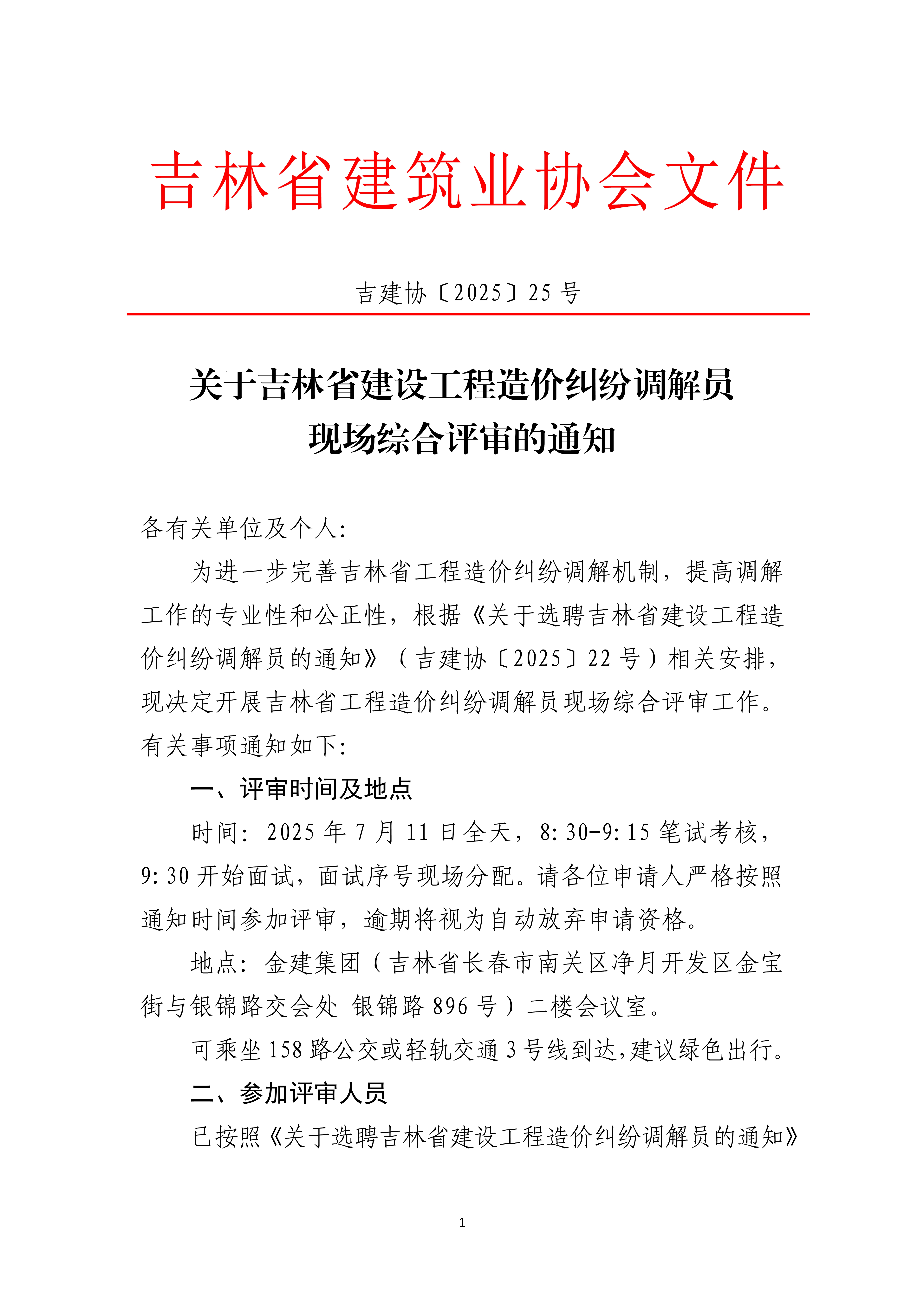 关于吉林省建设工程造价纠纷调解员现场综合评审的通知