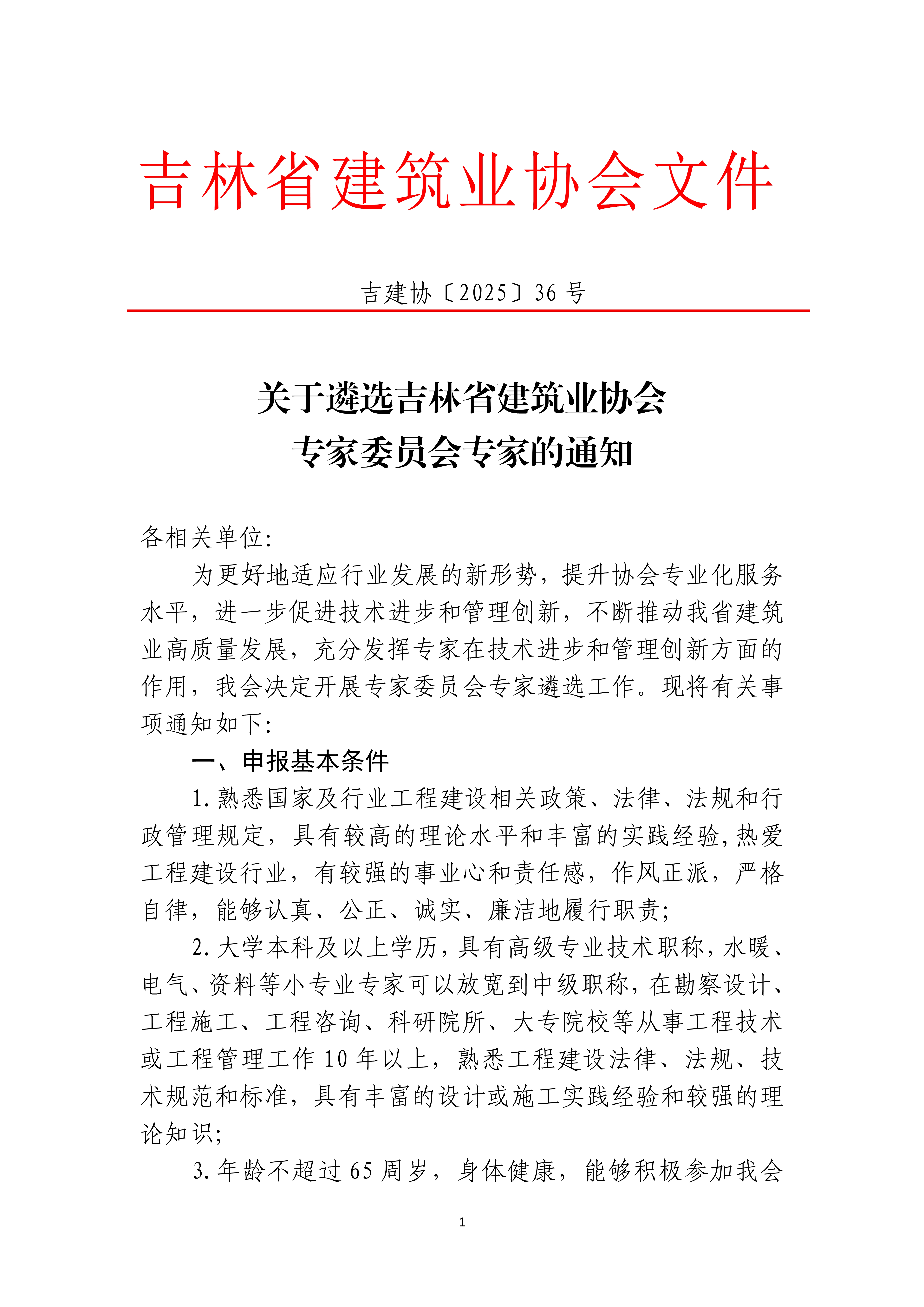 关于遴选吉林省建筑业协会专家委员会专家的通知