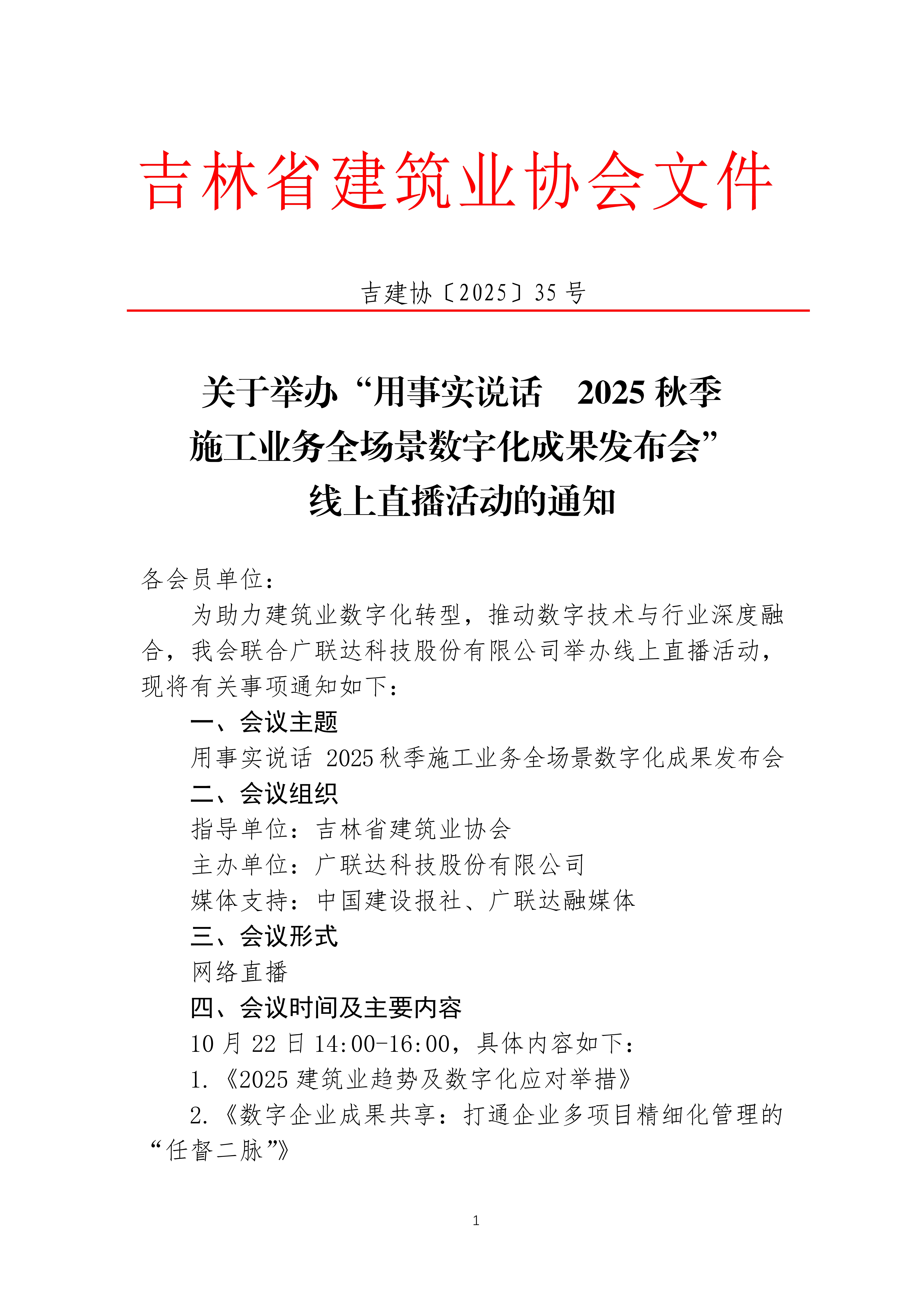关于举办“用事实说话 2025秋季 施工业务全场景数字化成果发布会” 线上直播活动的通知