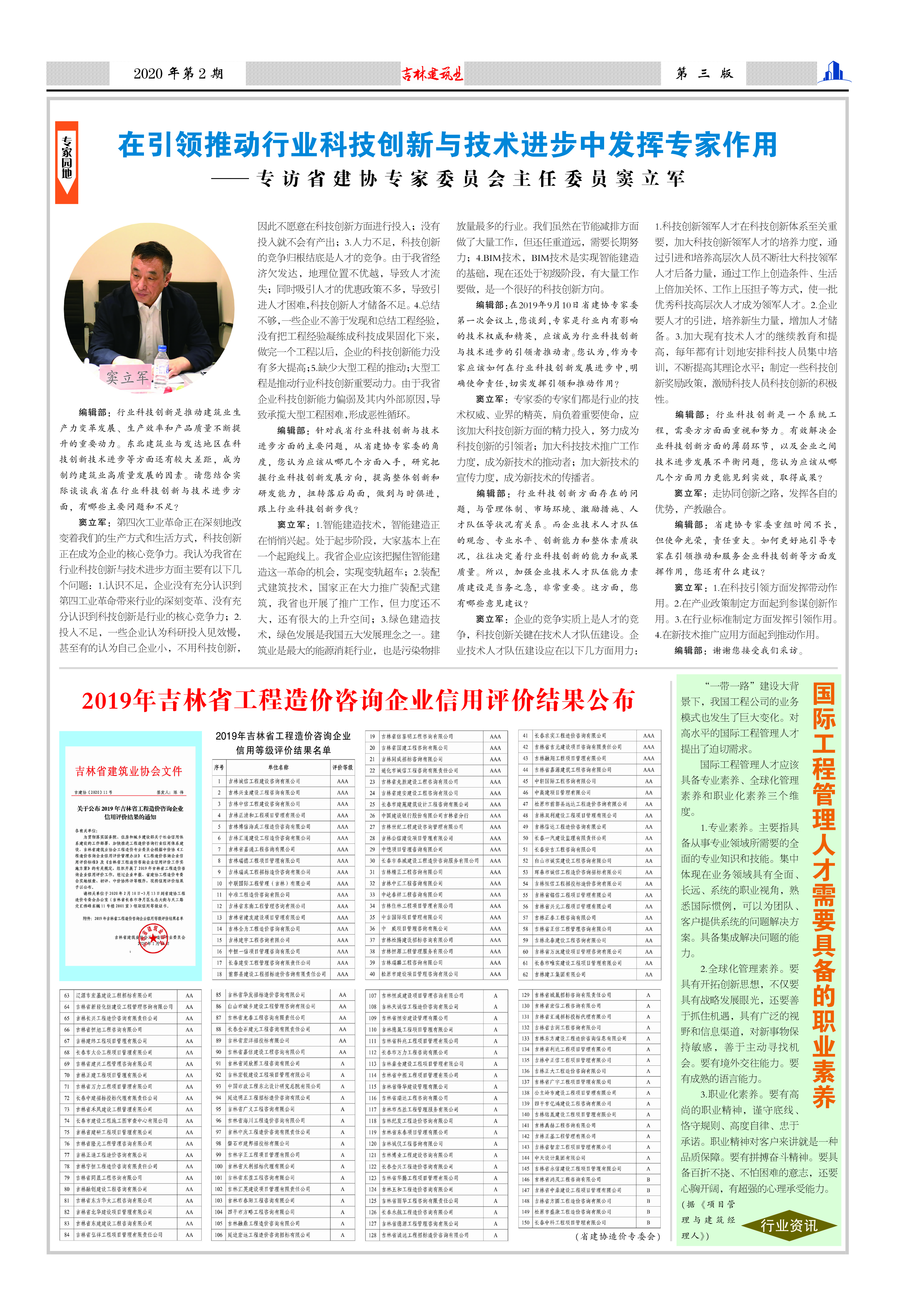 《吉林建筑业》2020年第二期