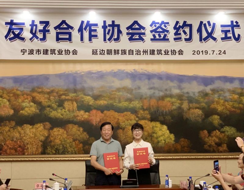 7月24日,浙江省建筑业行业协会考察团到延边朝鲜族自治州建筑业协会考察交流。宁波市建协与延边州建协签订了友好协会协议,在深化合作交流,助推会员企业在两地的市场开拓,相互学习,共同发展达成了共识。