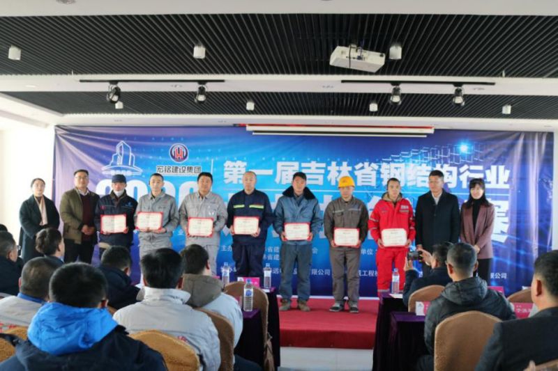 闭幕式上,由陈伟会长、王洪志主席、孔永臣常务副秘书长、龚春杰副秘书长、钢结构专委会马东升会长、吉林宏铭建设集团刘刚董事长等分别为获得“吉林省焊工技术标兵”“吉林省焊工技术能手”,团体一、二、三等奖以及优秀组织奖的获奖个人和单位颁发获奖证书。“吉林省焊工技术标兵”:吉林省建安钢结构制造有限公司陈洪宝、吉林省飞达杭萧科技有限公司李云龙、吉林省越东钢构集团有限公司张秋雪;“吉林省焊工技术能手”:山西建筑工程交通有限公司于海军、吉林建工集团泰安工程公司朱修鸽、吉林省中润钢结构科技有限公司周学振、吉林省北建钢构工程有限公司盛立强、吉林省建安钢结构制造有限公司陈洪刚、吉林省飞达杭萧建筑科技有限公司武警、吉林省金安达建筑工程有限公司孙胜东;团体一等奖:吉林省建安钢结构制造有限公司;团体二等奖:吉林省飞达杭萧建筑科技有限公司、吉林建工集团泰安工程公司;团体三等奖:山西建筑工程交通有限公司、吉林省金安达建筑工程有限公司;优秀组织奖:吉林宏铭建设集团有限公司。