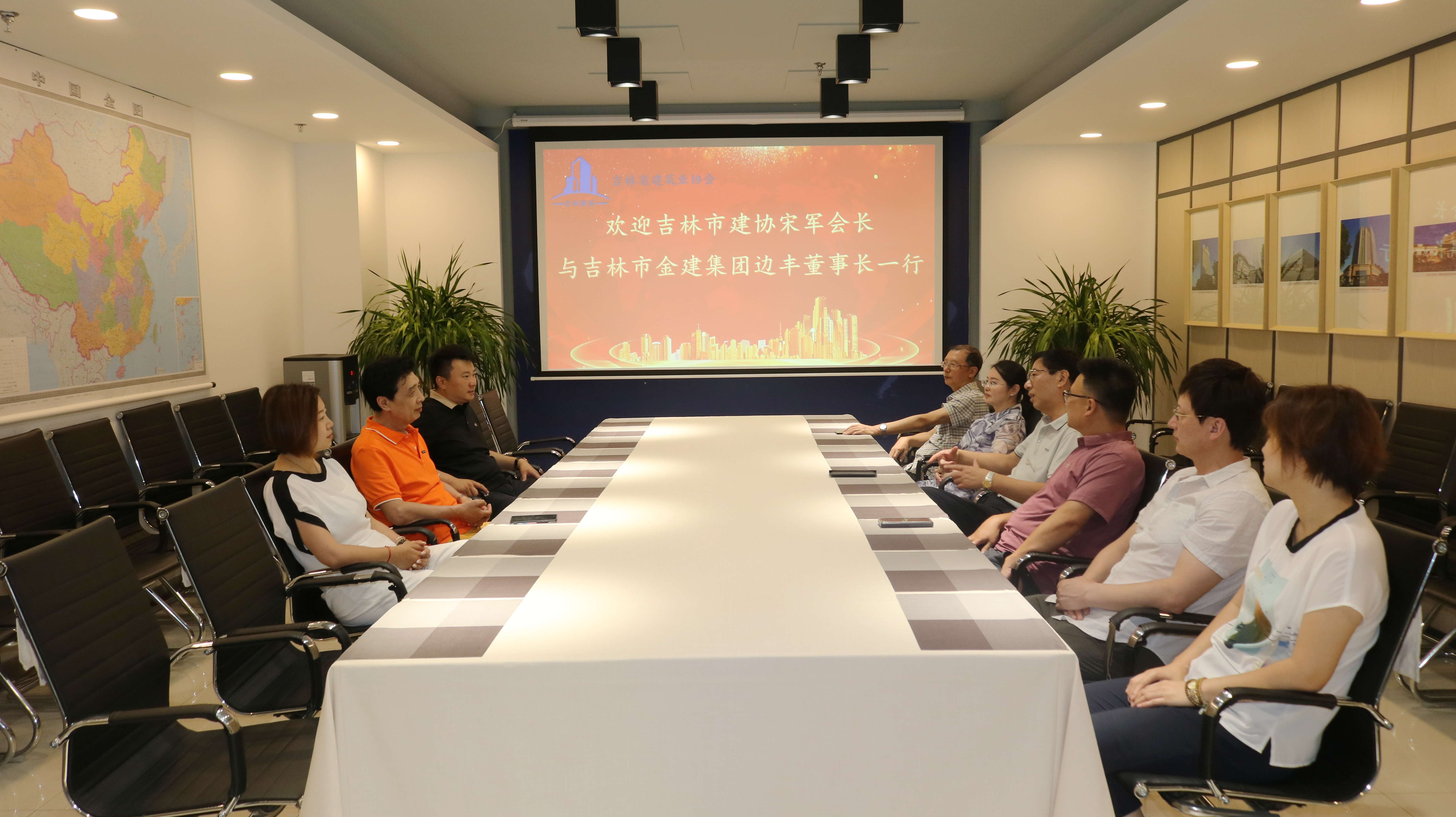 7月2日,吉林市建协宋军会长、王雪常务副秘书长,与吉林市金建集团边丰董事长来协会做客交流。陈伟会长、孔永臣常务副秘书长、龚春杰副秘书长等一起接待和交流。陈伟会长代表省建协欢迎宋军会长、边丰董事长来协会做客。他希望金建集团今后多参加省建协组织的活动,常联系多交流常回家,协会将竭诚为企业发展服务。