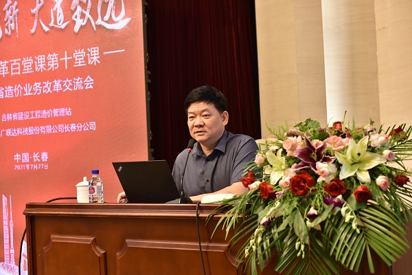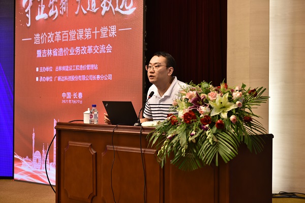 韩雪华站长在致辞中,对广东省建设工程标准定额站副站长卢立明的到来表示热烈欢迎。他指出,广东省作为工程造价改革试点地区之一,这次能够邀请到卢副站长到吉林省授课,为我们传经送宝,将改革的先进观念以及改革的经验带到吉林,是我们一次难得的学习机会。同时,韩站长对广联达科技股份有限公司长春分公司,为筹备这次会议付出的辛勤劳动表示感谢。