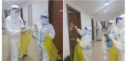 各寝室长负责领取本寝室全员试剂并发放到每个人,监督检测全过程。每日早餐前测试一次,寝室长审核检测结果,将检测结论和影像上传到本网格微信群,由网格长逐一查验、汇总后报至安环部,形成抗原检测记录表。