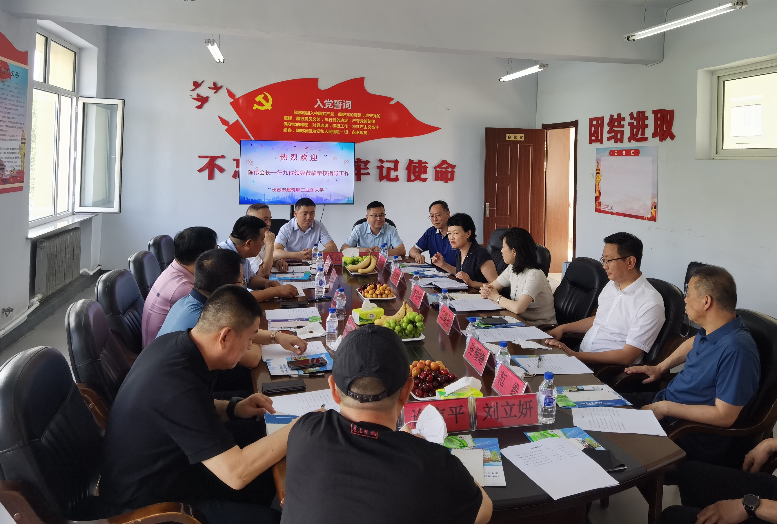 6月21日下午,由吉林省建筑业协会陈伟会长带队,中庆投资控股(集团)有限责任公司孙举庆董事长、吉林安装集团股份有限公司孙萌光董事长、长春建设集团股份有限公司李晨曦董事长、新星宇工程建设集团有限公司曲海平总经理、中庆建设有限责任公司邵占广董事长、吉林省中鑫路桥工程有限公司许言平董事长等一行9位企业家代表莅临我校考察,就我校发展建设、校企合作及建筑领域培训存在的亟待解决问题展开座谈。长春市人社局副局长李晓彤、长春市建设工程安监站站长王继征及学校班子成员、业务科室负责人参加会议。