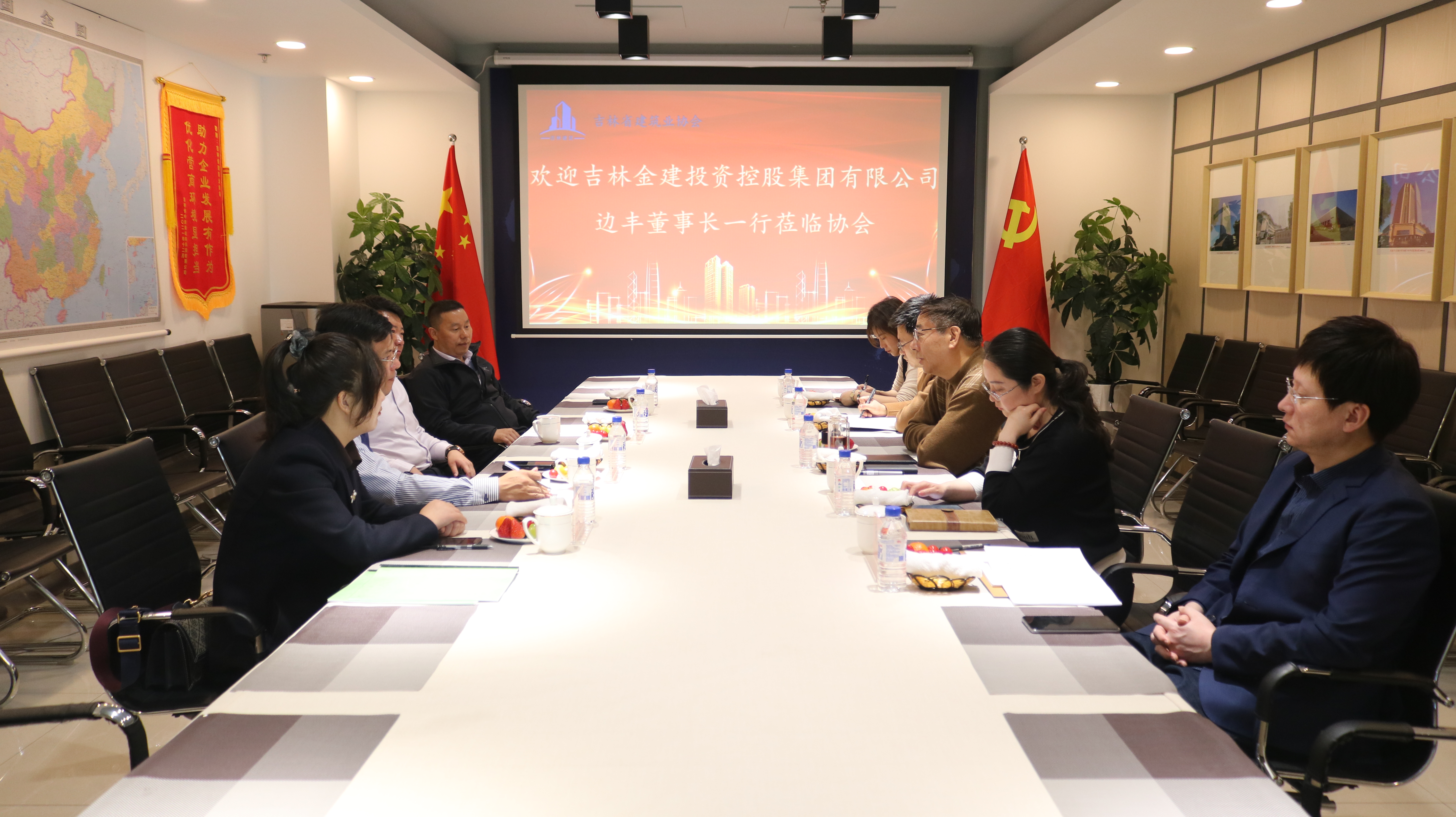 2月8日,吉林金建投资控股集团有限公司(以下简称吉林金建集团)边丰董事长一行到协会座谈交流。