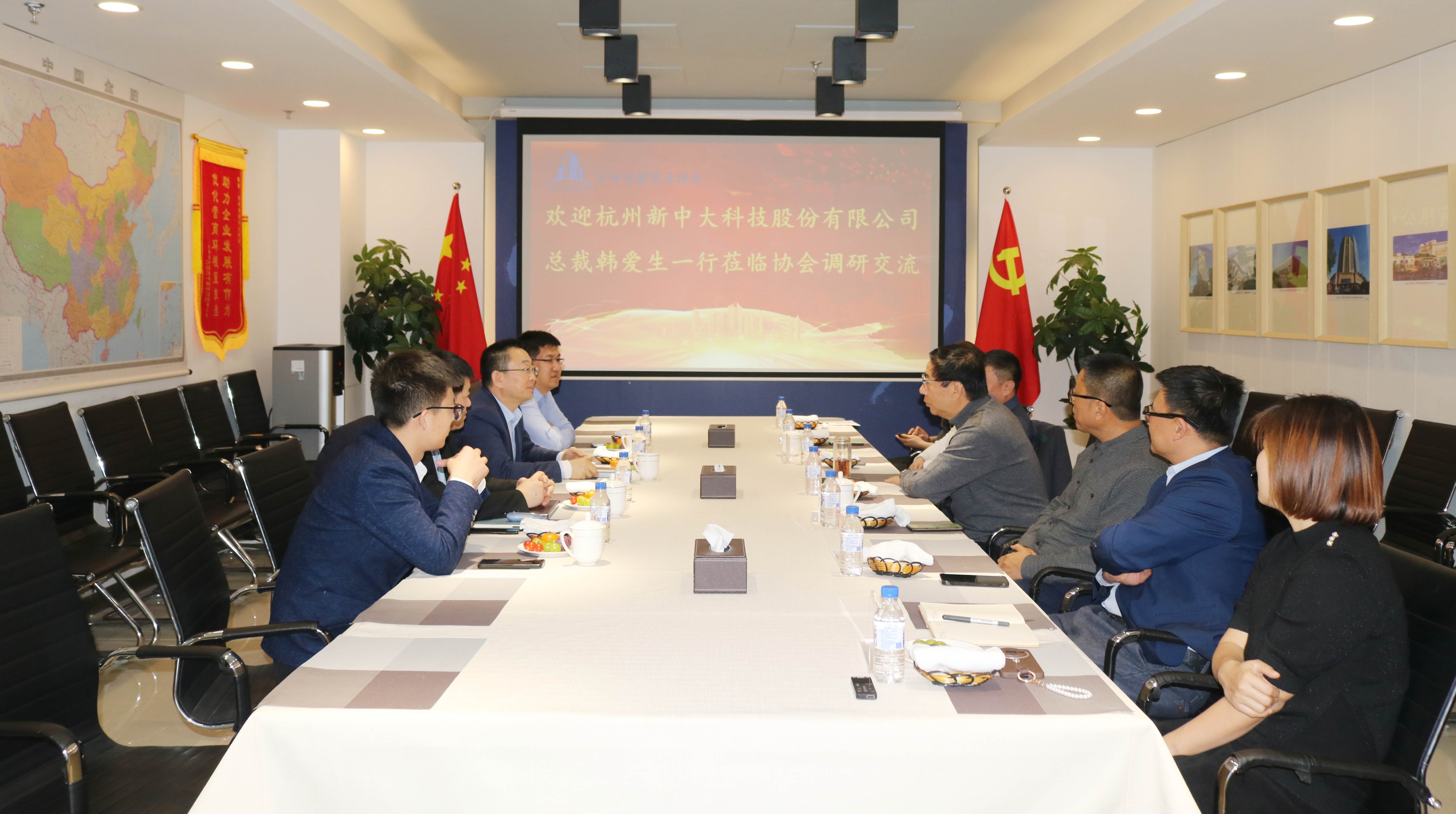11月24日,杭州新中大科技股份有限公司总裁韩爱生一行到省建协走访交流,双方就“数字化技术赋能建筑行业高质量发展”开展座谈。省建协副会长、中庆建设有限责任公司董事长邵占广,省建协副会长单位代表长春建业集团股份有限公司总经理陈辉参加座谈。省建协党支部书记龚春杰,秘书长孔永臣,省建协副秘书长、办公室主任刘立妍陪同座谈。