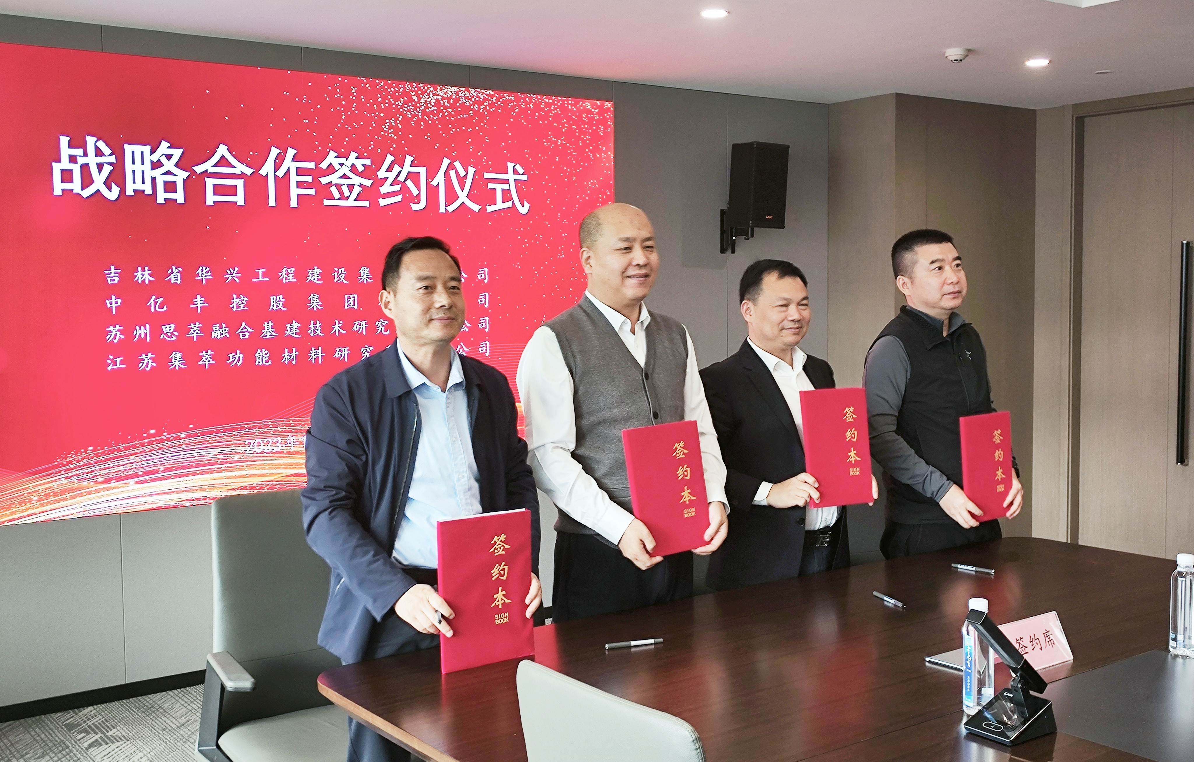 日前,省建协副会长单位吉林省华兴工程建设集团有限公司(以下简称华兴集团)与中亿丰控股集团有限公司、苏州思萃融合基建技术研究所有限公司、江苏集萃功能材料研究所有限公司在苏州签订四方战略合作协议,携手开启战略合作新里程。
