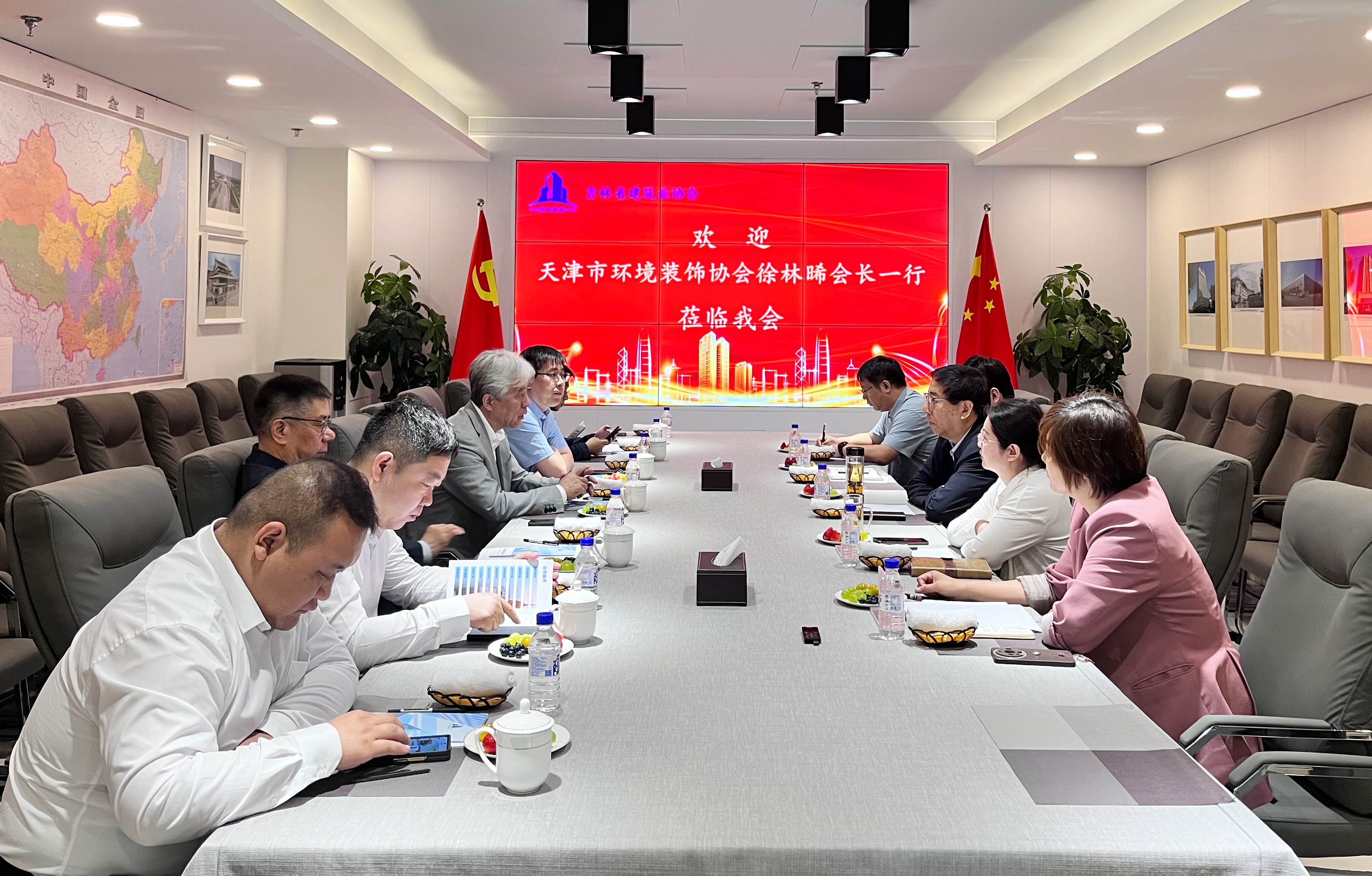 5月28日,天津市环境装饰协会会长徐林晞、监事长赵勇夫一行7人到访吉林省建协,双方就行业发展趋势、协会间合作以及推动行业创新发展等问题进行探讨与交流。