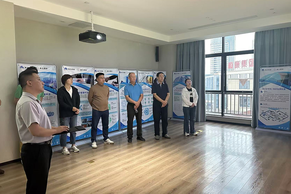 在江西省建筑业协会会员企业——海力控股集团,在工作人员的引领和讲解下,陈伟会长一行先后参观了海力控股集团的企业展厅、智慧工地管理平台系统等,深入了解了海力控股集团的生产经营、研发创新、发展规划等情况。