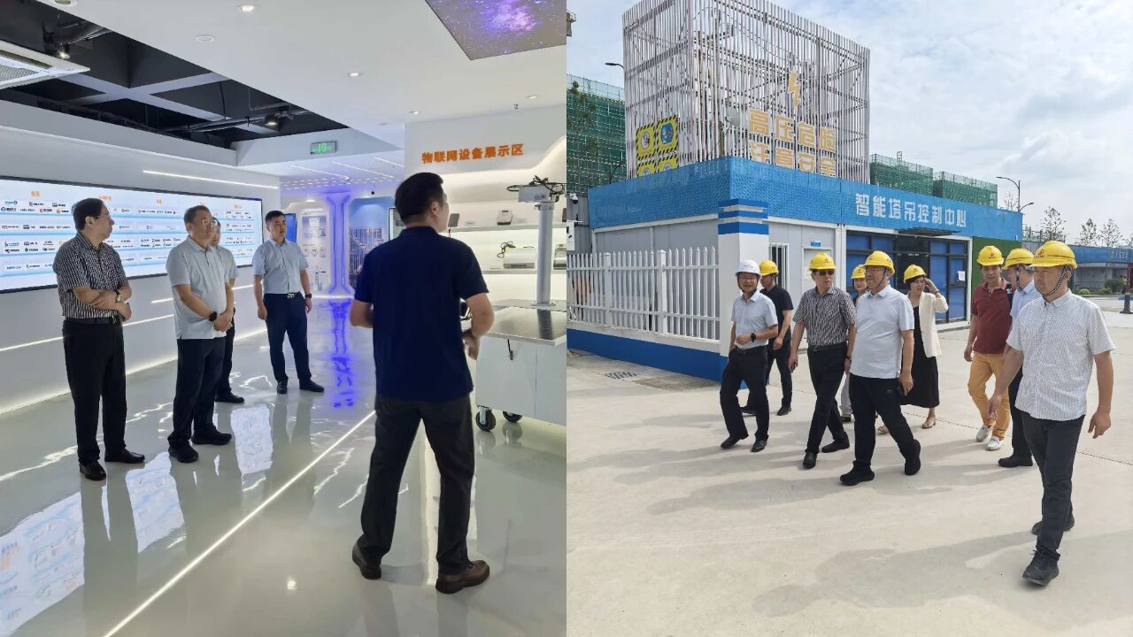 调研中,陈伟会长、孟宝良会长一行在新中大科技团队陪同下,先后参观了企业展厅与科技园项目现场,深入考察企业发展历程、企业文化及产品研发情况,重点了解新技术在项目全生命周期的应用成果,尤其关注人工智能大模型、智能建造等前沿领域创新,以及“AI +”技术在提升工程效率、降低成本、优化资源配置方面的解决方案与实践成效。