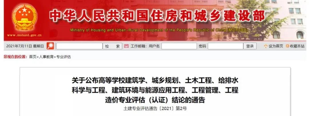 近日,住建部发布《关于公布高等学校建筑学、城乡规划、土木工程、给排水科学与工程、建筑环境与能源应用工程、工程管理、工程造价专业评估(认证)结论的通告》。
