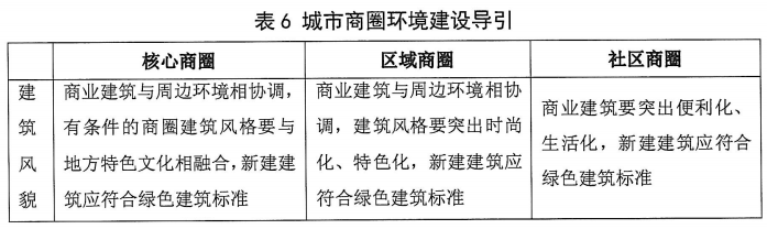 在环境建设方面,征求意见稿就建筑风貌、交通组织、智慧建设以及公共设施方面也提出了明确的要求。其中,在建筑风貌方面,明确城市商圈建筑风格应体现城市定位和地域文化特色。新建、改建或扩建的商业建筑,其高度、建筑密度、容积率等规定性指标应符合城市设计、片区详细规划的要求,建筑立面、材料、色彩、功能等引导性指标应与整个商圈风貌和周边环境相协调,且不得影响和破坏文物等历史文化遗产及其环境安全。