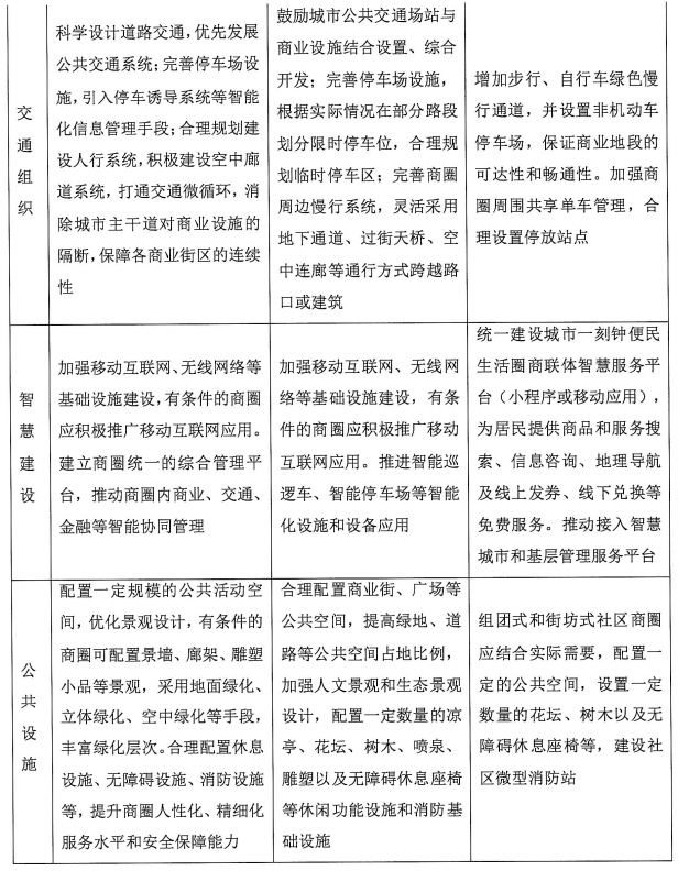 此外,征求意见稿还指出,要基于城市现状和发展需求,引入新理念、新技术、新业态、新模式,推动城市商圈升级改造,促进商圈差异化发展,形成不同层级商圈功能和业态互补的发展格局。