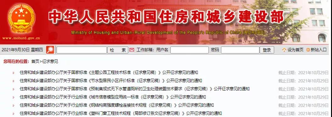 近日,住建部公布新一批国家标准和行业标准的征求意见稿,意见反馈截止时间为2021年10月29日,具体包括: