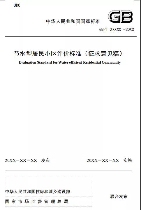 国家标准《节水型居民小区评价标准(征求意见稿)》