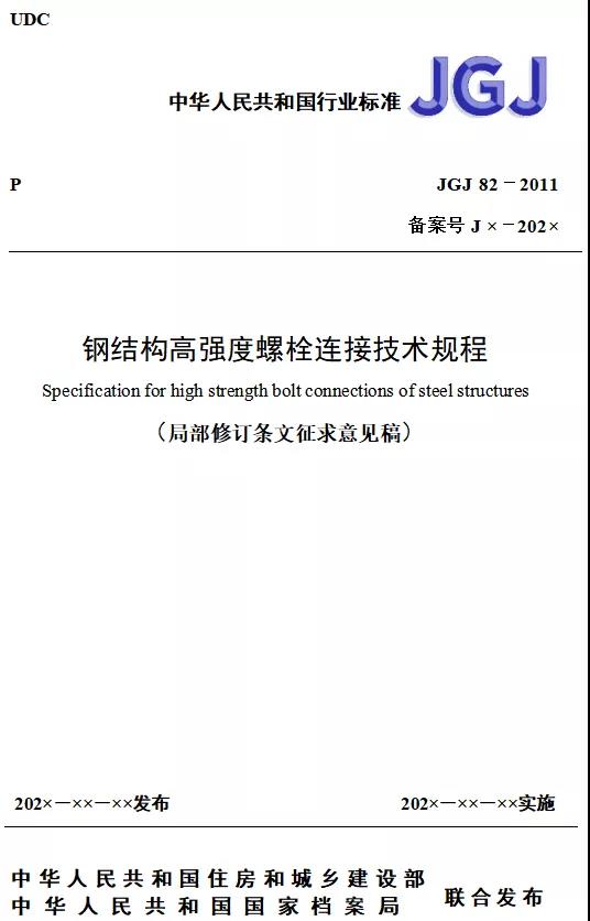 行业标准《钢结构高强度螺栓连接技术规程(征求意见稿)》