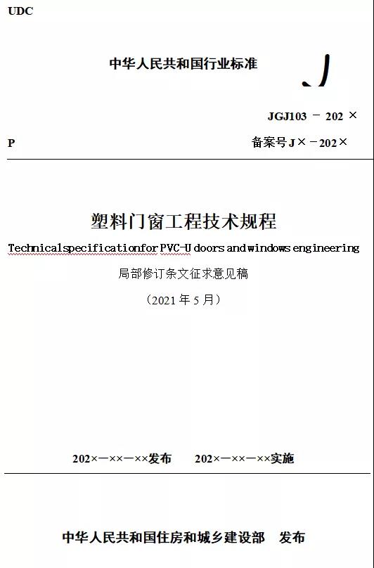行业标准《塑料门窗工程技术规程(局部修订条文征求意见稿)》