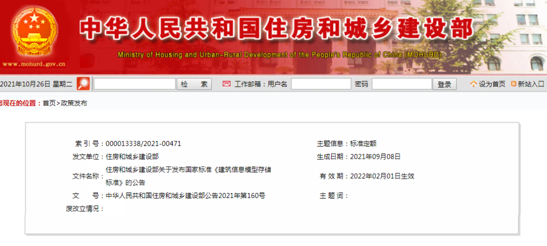 现批准《建筑信息模型存储标准》为国家标准,编号为GB/T51447-2021,自2022年2月1日起实施。
