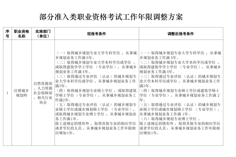 附件:部分准入类职业资格考试工作年限调整方案