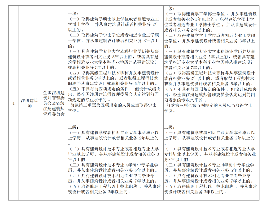 (五)不具有前四项规定的条件,但设计成绩突出,经全国注册建筑师管理委员会认定达到前四项规定的专业水平的。