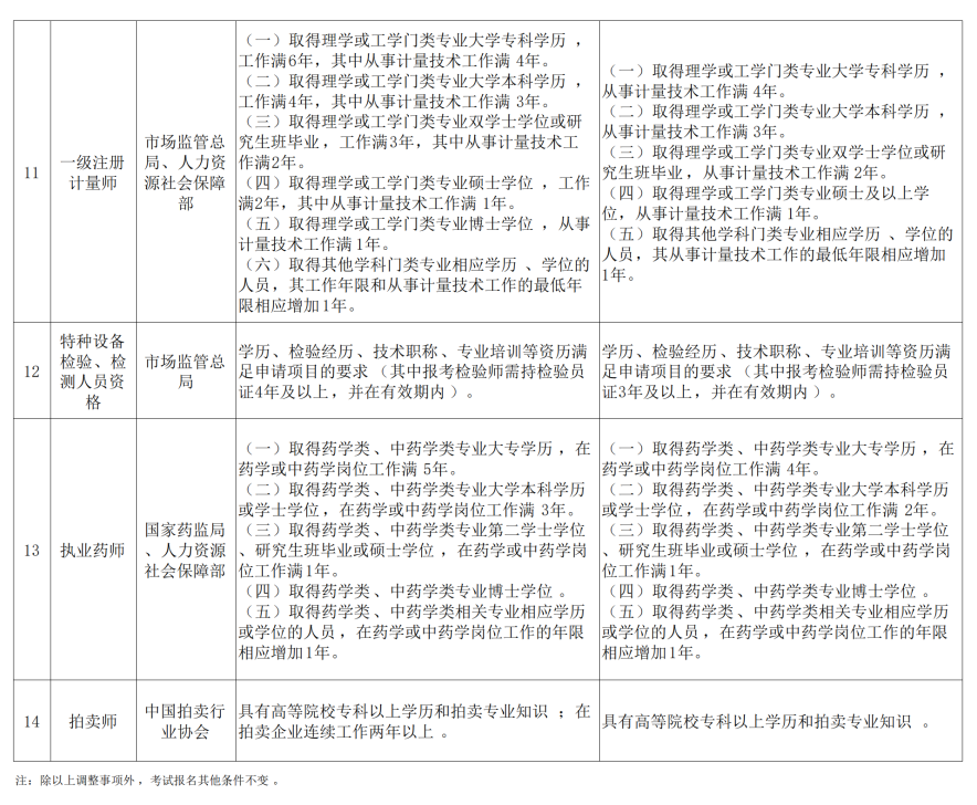 调整后报考条件: