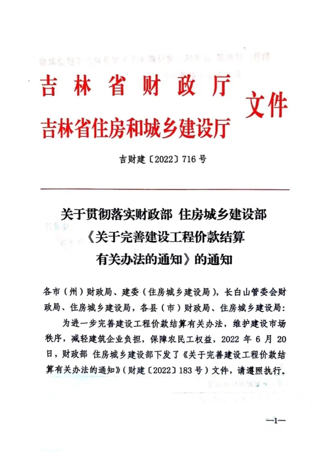 省财政厅省住建厅-关于贯彻落实财政部住建部《关于完善建设工程价款结算有关办法的通知》的通知