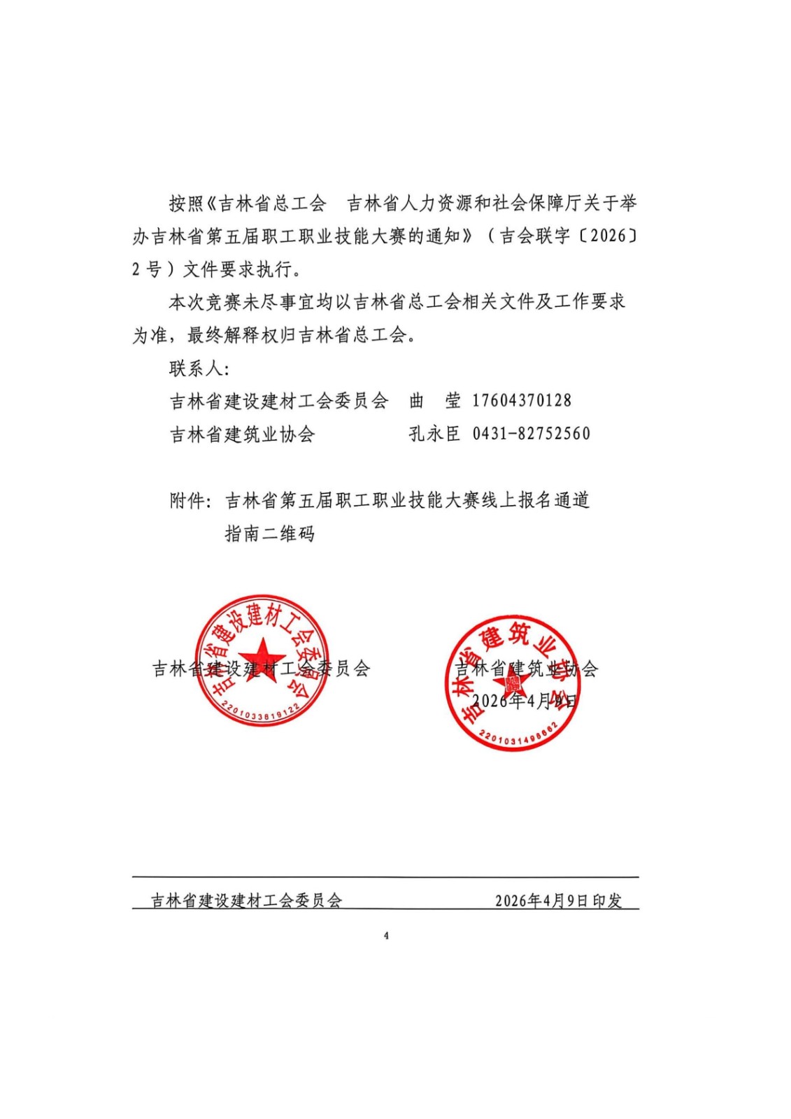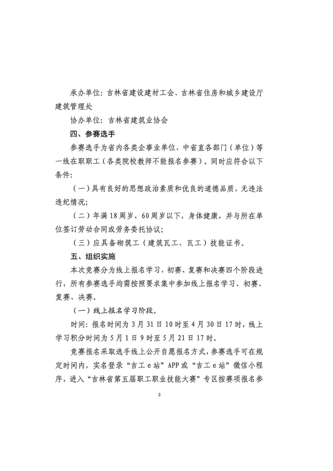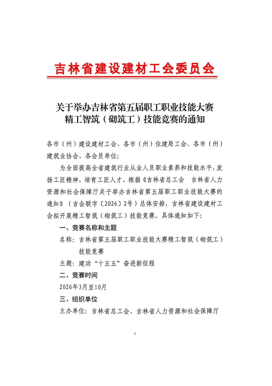 关于举办吉林省第五届职工职业技能大赛精工智筑(砌筑工)技能竞赛的通知