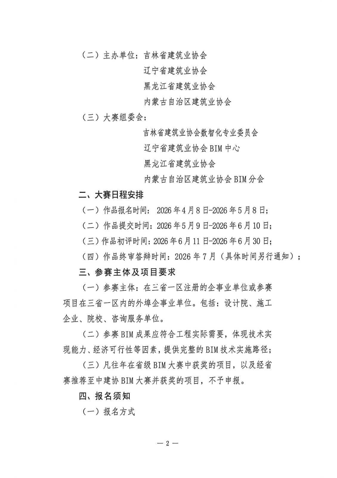 附件1:东北三省一区2026年度建设工程BIM技术应用大赛参赛细则(1).doc